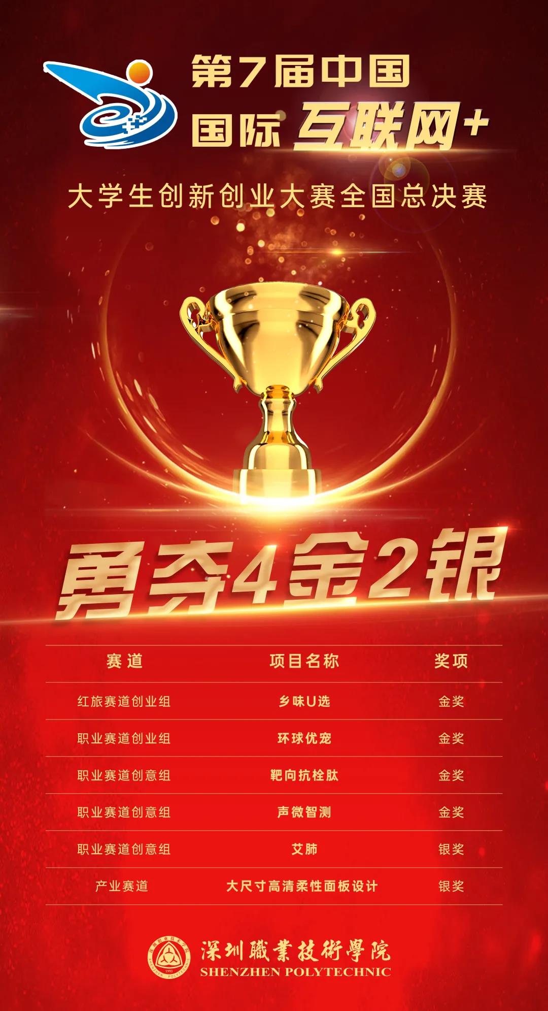10月14-15日,第七届中国国际“互联网+”大学生创新创业大赛总决赛在南昌大学举办,本届大赛共有来自121个国家和地区的4347所院校、228万余个项目、956万余人次报名参赛。全国今年入围国决赛的红旅赛道项目150个,共产生50个金奖;职教赛道项目150个,共产生50个金奖;产业赛道项目50个,共产生15个金奖。学院李永红、冯金军等老师指导的红旅赛道项目“乡味U选”与普通高校的项目同台竞技,最终获得金奖(全国仅有2个高职院校获得此赛道金奖)。