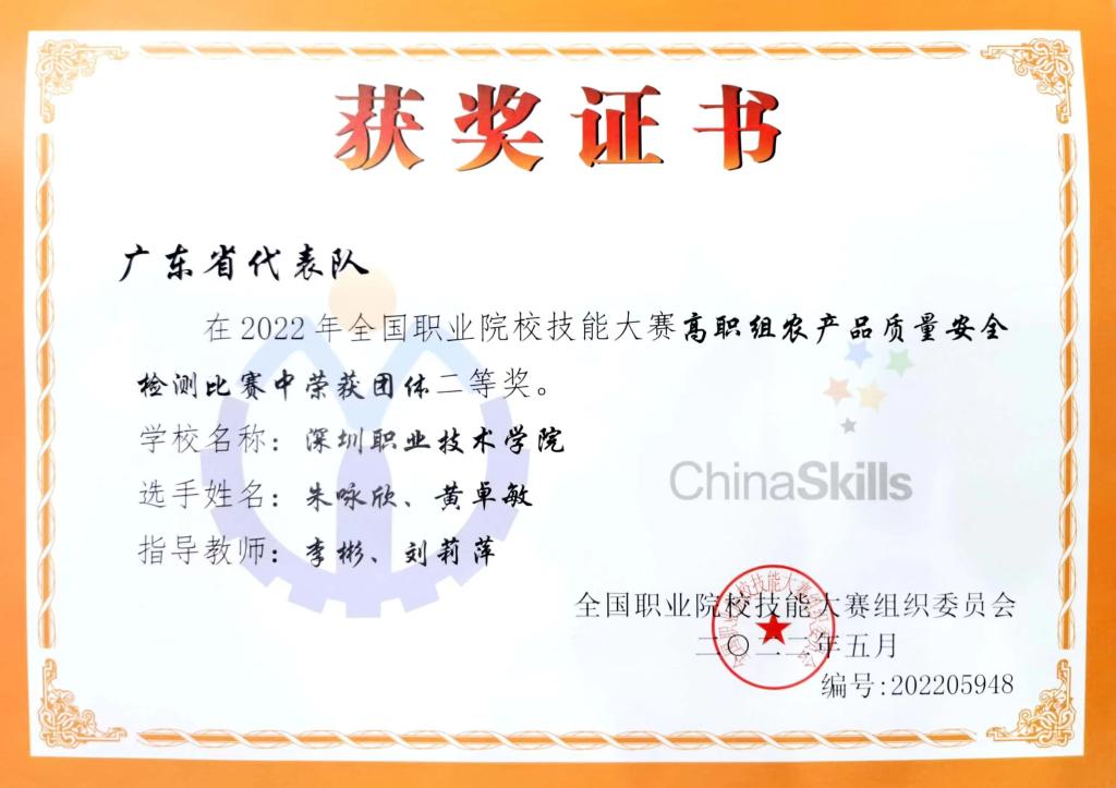 8月24日至26日,由教育部等部门主办的2022全国职业院校技能大赛“农产品质量安全检测”赛项在陕西杨凌举行。经过激烈角逐,由我校KY开元集团官网朱咏欣、黄卓敏2名学生组成的广东省代表队,在本次赛项中取得了二等奖的好成绩。