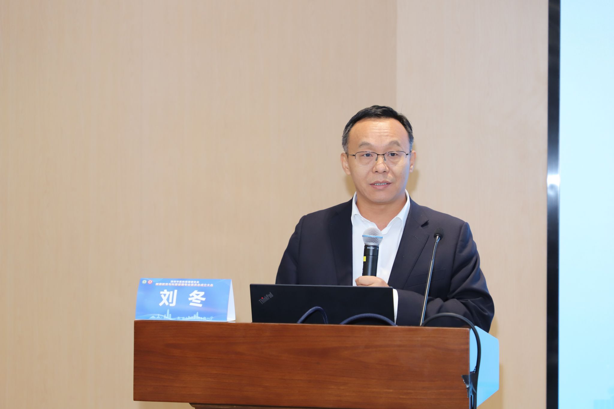 刘冬教授首先代表学校致欢迎词,协会副会长吴肖叶现场宣读专委会成立批复文件。随后,深圳市第二人民医院李澎灏主任作专委会筹备工作报告。李主任从专委会成立背景、筹备进程、组成情况、发展规划等方面进行简要汇报,并对许四虎、郭振军两位专家担任专委会顾问表示感谢。