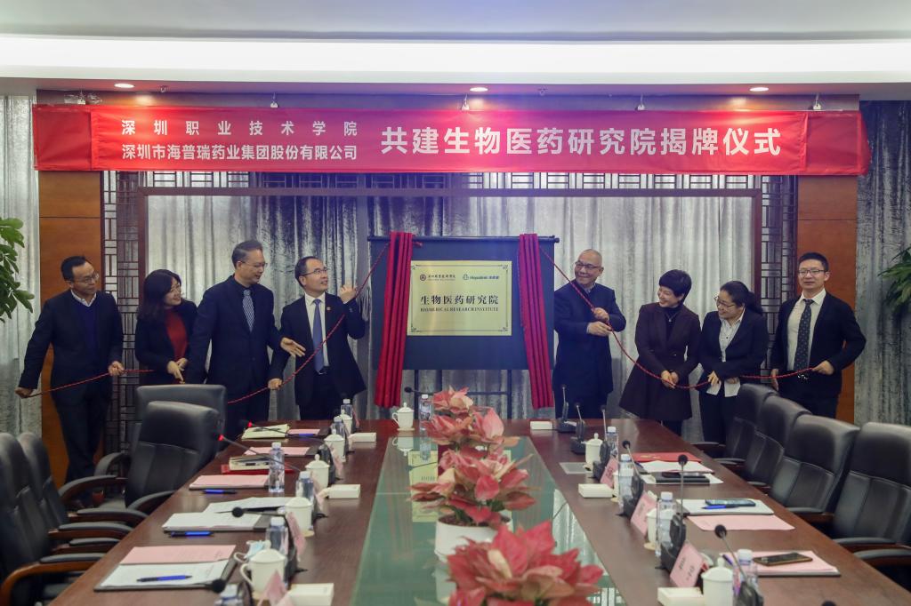 许建领在讲话中指出,生物医药是深圳市战略性新兴产业,中国已经成为医药行业全球最大的新兴市场,并一直保持持续增长态势。与此同时,创新型生物医药企业所需的人才缺口巨大。此次成立生物医药研究院,是学校与海普瑞将海普瑞生物医药学院合作共建走实走深的具体举措,也标志着双方合作进入新的阶段。希望生物医药研究院有效集聚双方优势资源,加强应用技术研发,助力我校生物与医药高水平学科建设,共同打造国内生物医药领域职业教育校企合作的典范,为粤港澳大湾区生物医药产业发展提供强大的技术、人才与智力支持。
