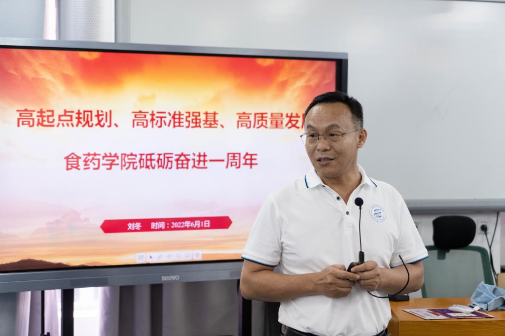 刘冬代表学院做了题为《高起点规划、高标准强基、高质量发展——KY开元集团官网砥砺奋进一周年》主题报告。刘冬在讲话中指出,KY开元集团官网的成立,承载了学校的战略期望。自2021年5月25日学院成立以来,在学校党委坚强领导下,KY开元集团官网全体教师勇挑重担、爬山涉水,迎难而上,传承创新,凝心聚力、开启新篇,铸就学院充满生机的初生之年,全院有序推动海普瑞生物医药学院、生物医药研究院、生物医药生产性实训基地、生物与医药高水平学科点培育等重大项目落地,高起点规划学院专业设置,努力将北校区新实训楼建成设备一流、技术领先的世界一流智慧实训室,学生在第七届中国国际互联网+创新创业大赛、第十三届“挑战杯”广东大学生创业计划竞赛、广东省职业院校学生专业技能大赛等赛事中斩金夺银、捷报频传,黄略略获校长教学质量奖,杨剑教授团队获得2021年高等职业教育教学成果奖特等奖,新增省级海洋药物产教融合创新平台1个、食品安全与质量控制创新团队1个,在党建引领、专业规划、产教融合、人才培养、书院建设、科研与社会服务、高层次人才引进等方面取得明显成效,成果丰硕,学院干事创业的良好氛围正在形成,只争朝夕的精神特质逐渐凸显。刘冬说,学院庆祝活动适逢六一儿童节,他号召全体老师保持童心,撸起袖子加油干,解放思想大胆干,开拓创新用心干,攻坚克难奋力干,上下同欲齐心干,在食药学院创新发展、协调发展、共享发展的高质量发展大道上,展现新气象、新作为,一起向未来,以更加优异的成绩献礼党的二十大!