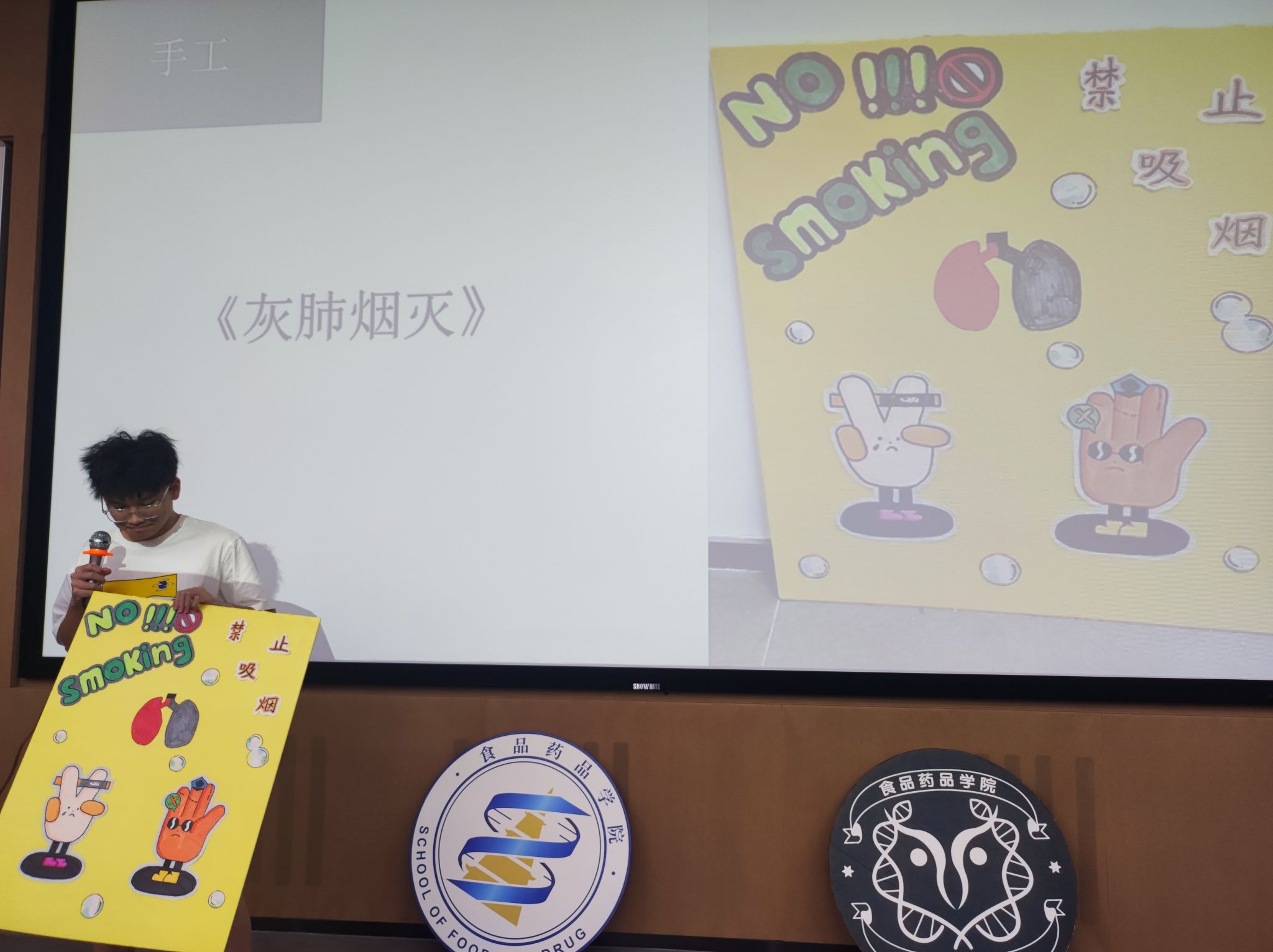11月9日,为响应学校建设无烟校园号召,积极建设无烟环境,推进控烟行动,树立健康向上的社会风尚,食药学院在北区教学楼举办校园无烟周系列活动,活动受到了学生的广泛关注并积极参与。本次活动分为四个板块:无烟周海报标语设计、创意手工作品、公益微电影短视频及现场路演答辩。每个小组都将自己的创作灵感和寓意一一陈述。本次无烟周系列活动各项优秀作品,体现了同学们对吸烟有害健康的深刻认识,形成戒烟禁烟的良好氛围,促进师生共同构建无烟校园。(食药学院 刘根柱)