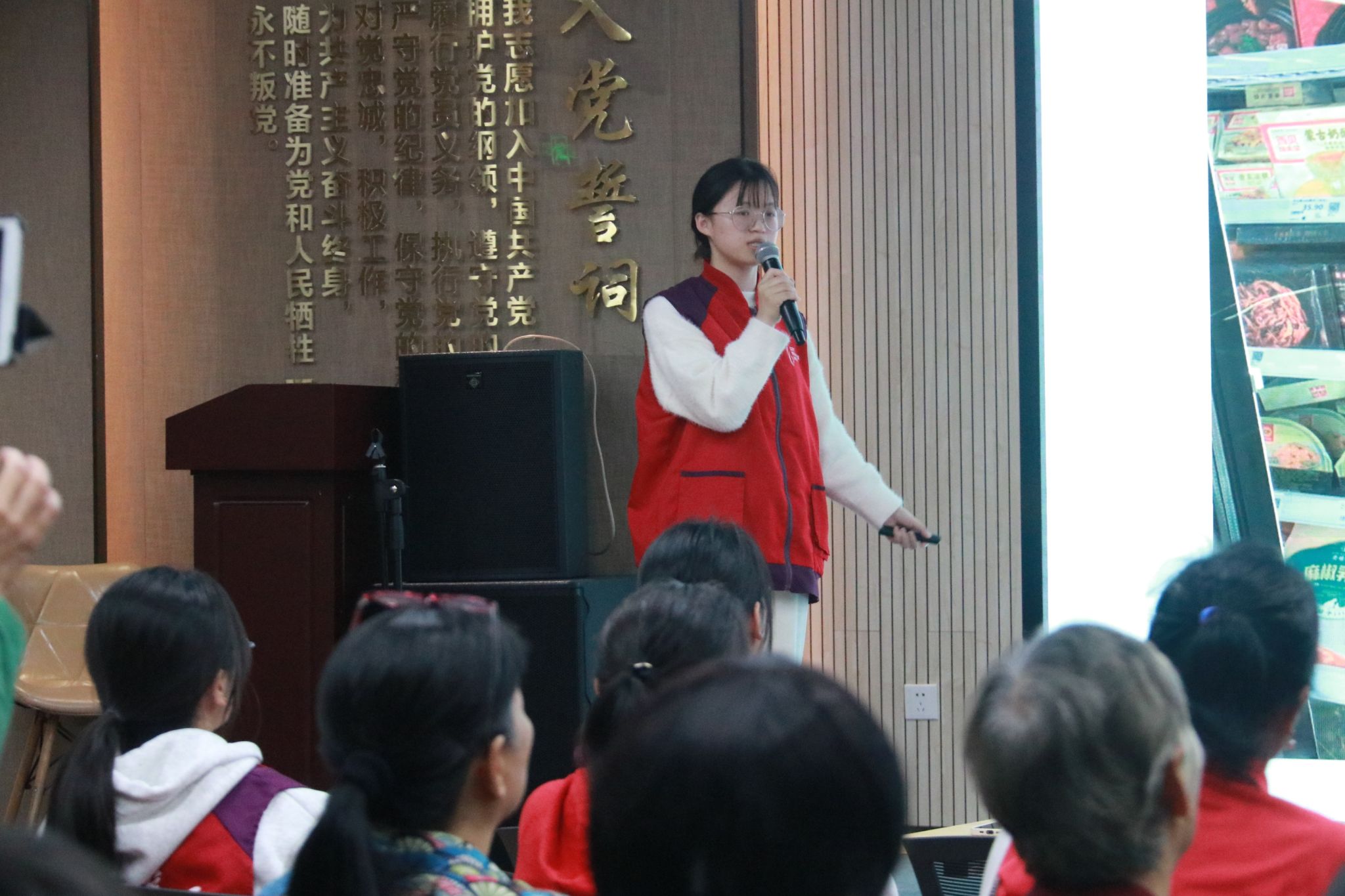 经报名筛选,食药学院13名来自药学、食品质量与安全、食品营养与健康专业的“讲师”们脱颖而出。他们经过校内食品安全与营养知识宣讲大赛的打磨,精心准备科普宣讲课件,虚心请教教师指导把关,确保宣讲内容科学准确。活动现场,他们通过视频展示和讲解分别向社区居民科普了正确认识食品添加剂、预制菜、水果营养及膳食纤维等知识,帮助社区居民初步树立起了膳食营养和食品安全的理念,引导群众关注饮食健康,共建共享健康安全的食品环境。现场还同步开展了知识问答互动,社区居民对同学们的表现给予了热烈回应。
