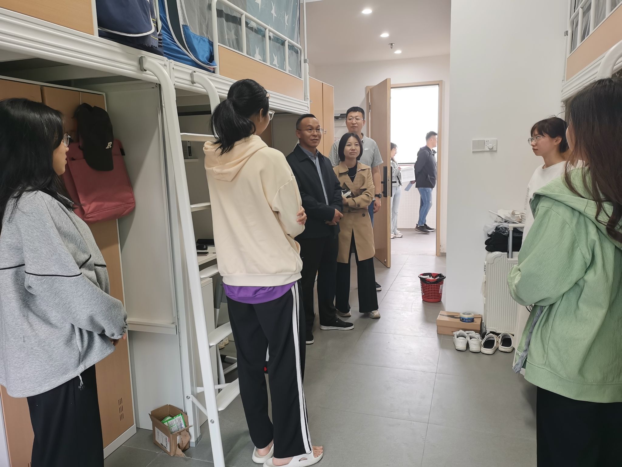 2月23日,在新学期开学之际,为更好地了解学生的生活状况,加强师生沟通,食药学院领导班子携全体辅导员深入学生社区走访学生宿舍。