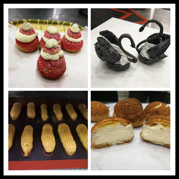 在了解了基本步骤和注意事项后,协会成员们跃跃欲试,纷纷开始打发鸡蛋,煮牛奶,整个实训室沉浸在欢声笑语中。活动现场,大家奇思妙想,制作出了不同形状不同颜色的泡芙,如粉色少女心泡芙,冷艳典雅黑天鹅泡芙等等,并将自己制作的泡芙分享给在场的老师和小伙伴们品尝。