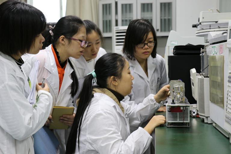 “很新鲜。以前上实训课只按照实训卡单流程规范操作,现在还有机会拆卸气相质谱联用仪这样的高端精密仪器。”15食检1班张雅菊兴奋地说。