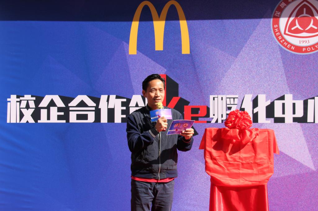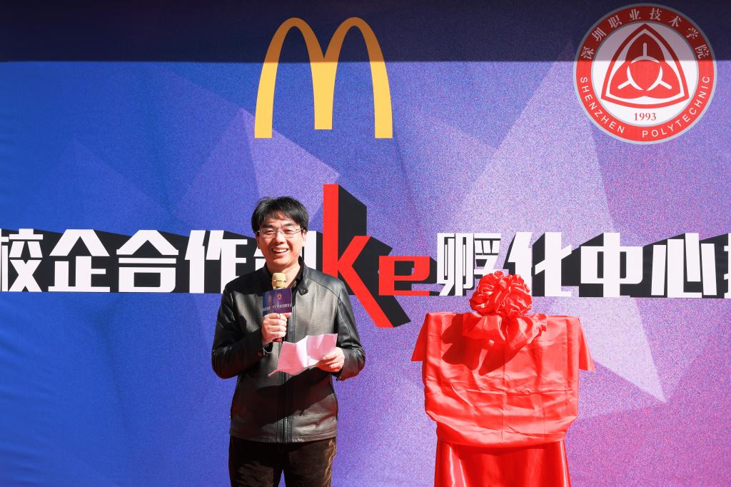 陈影宏先生代表麦当劳对多年来与深职院的合作表示感谢,对我校学生在麦当劳的优异表现给予了充分的肯定,对未来的进一步深入合作提出了期望。陈影宏说,麦当劳已经吸纳了300余名深职院毕业生,越来越多的深职校友成长为麦当劳管理层的中坚力量。创Ke孵化中心联合深职院打造学生餐厅,创Ke的Ke首先是学生课业的“课”,要想成才,必须进行完善的课程体系学习,其次是以客为先的“客”,这是麦当劳深入骨髓的企业文化,最后是科学的“科”,培养人才必须具有科学的发展观,与时俱进。